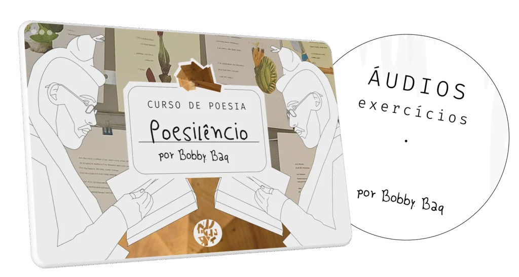 O Curso de Poesia Poesilêncio, engloba 17 aulas gravadas divididas em 4 módulos, com toda a base teórica e aprofundada da pesquisa sobre a palavra, a poesia e o silêncio. 4 áudios pra praticar a partir de estímulos e exercícios propostos pelo Bobby Baq, além de participar do nosso grupo de membros e ganhar acesso à uma curadoria de conteúdos pra seguir os seus estudos sobre linguagem e silêncio. 2 PDFs com materiais de dicas e instruções por Bobby Baq.